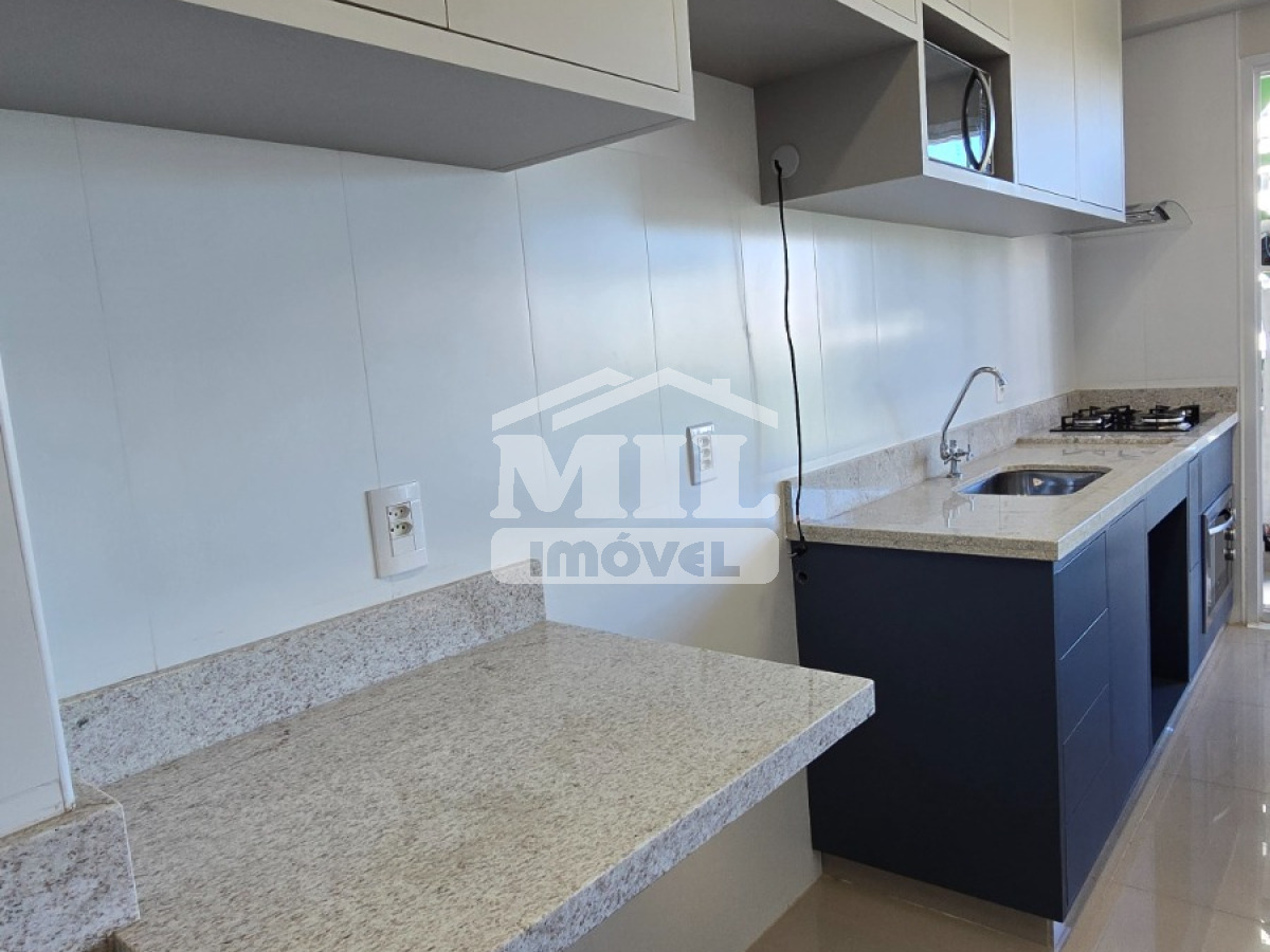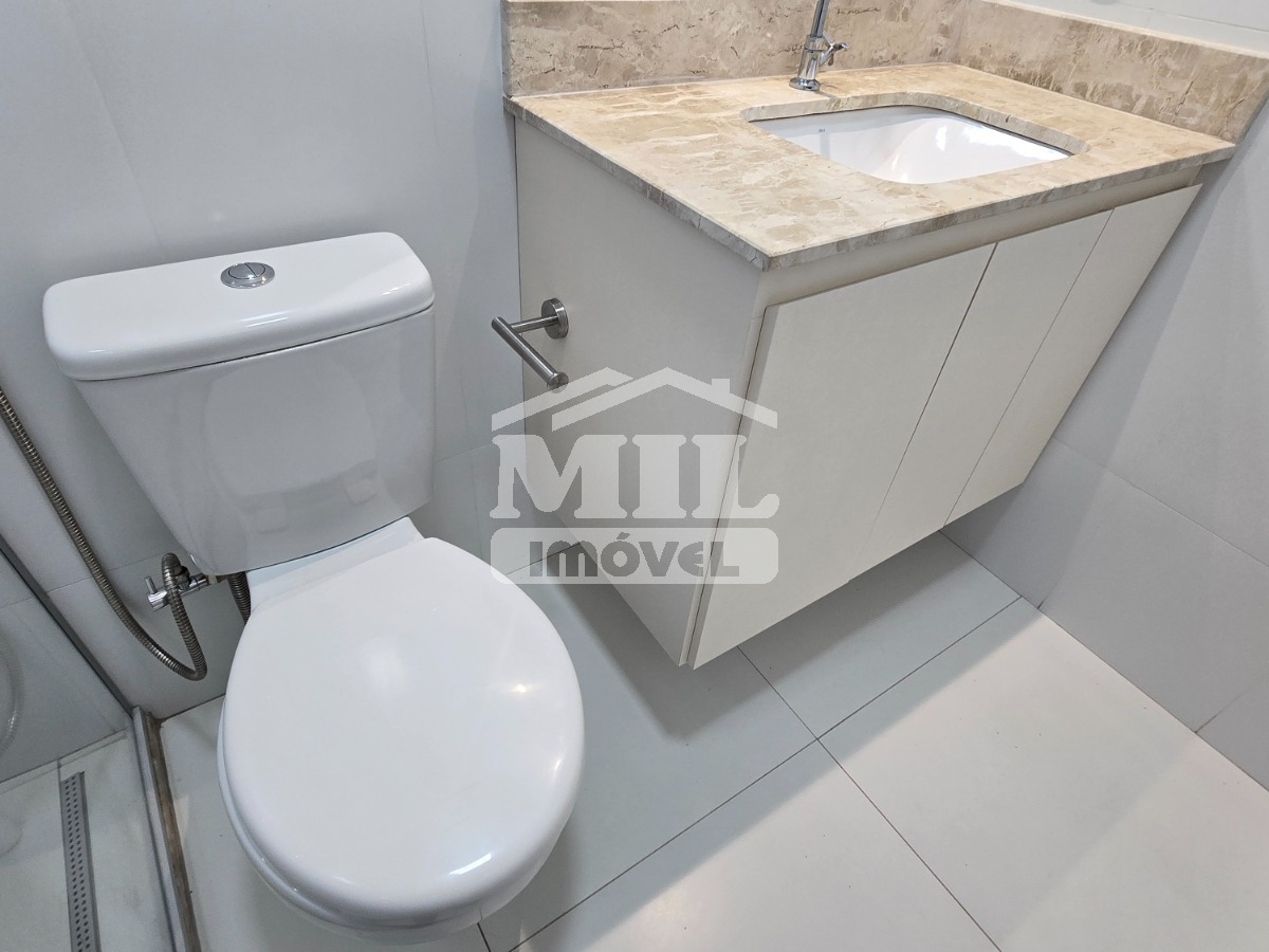 Armários planejados na cozinha, sala, na área de serviço, nos banheiros e no quarto suite.